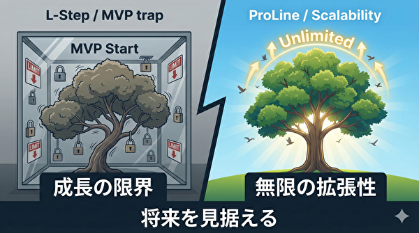「短期的な知名度で選ぶならLステップ、長期的な拡張性とコスパで選ぶならプロライン一択」です。
