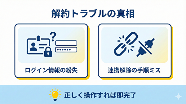 ネット上で「プロラインは解約が分かりにくい」と言われることがありますが、その多くは「ログイン情報の紛失」や「連携解除の手順ミス」によるものです。