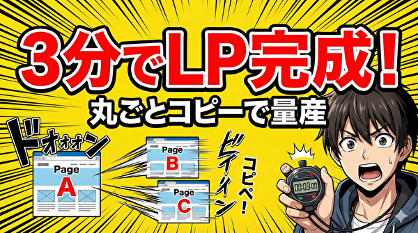 「セミナーAの申し込みページ」を作ったら、それを複製して「セミナーBの申し込みページ」を作る。画像と日程だけ差し替えれば、3分で新しいLPが完成します。