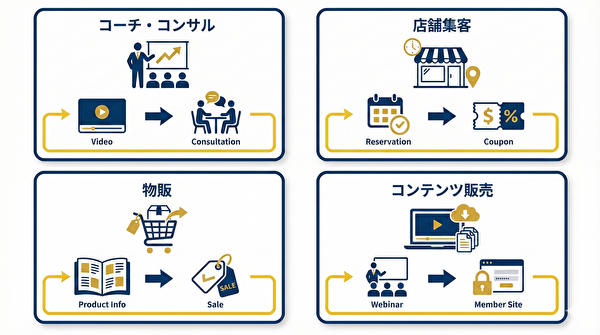- コーチ・コンサル用:無料動画講座 → 個別相談への誘導シナリオ