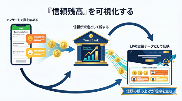 LP内に、実際のお客様の声や実績データを並べてください。プロラインの「フォーム機能」と連携させれば、アンケート結果をそのままLPの素材にすることも可能です。