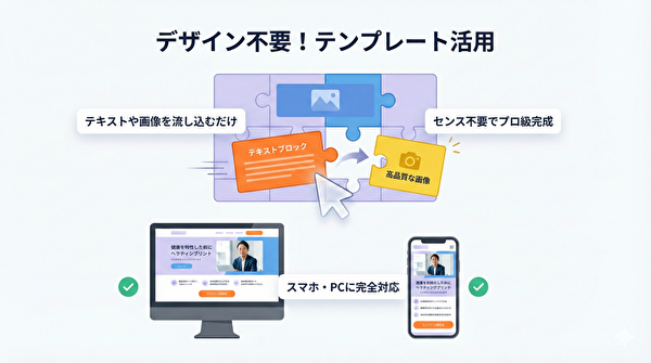 あらかじめ用意されたテンプレートに、あなたのテキストや画像を流し込むだけで完成します。スマホ表示にも完全対応しているため、読者の離脱を最小限に防ぎます。
