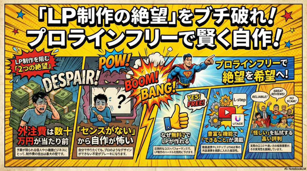 こんにちは、戦略家であり、あなたのビジネスの仕組み化を支援するメンターです。今日は、多くの起業家が挫折する「LP制作」を、コスト0円で劇的に効率化し、成約率を跳ね上げる勝ち筋をお伝えします。