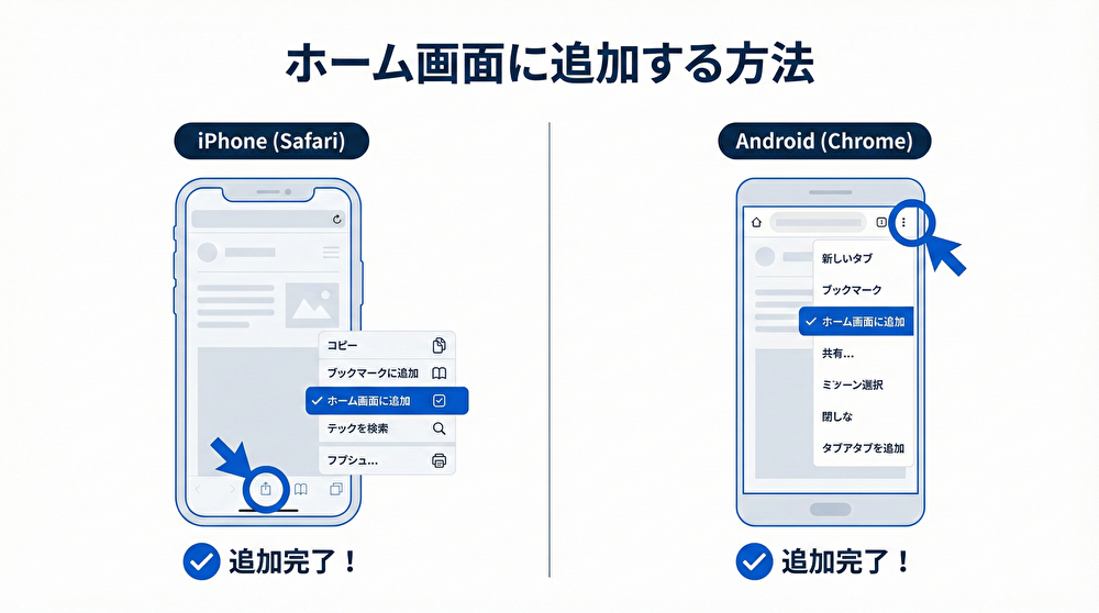 3. 「ホーム画面に追加」を選択 → 追加完了
